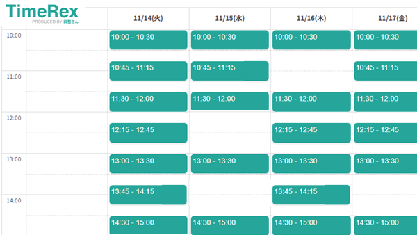 TimeRexで空き状況を確認でき、都合のいい日で予約可能です。